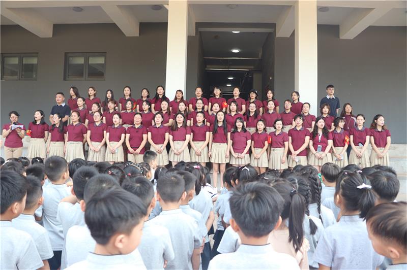 樹恩附小的全體師生與初中部和高中部大哥哥、大姐姐們一起參加了新學期的第一次升旗儀式。