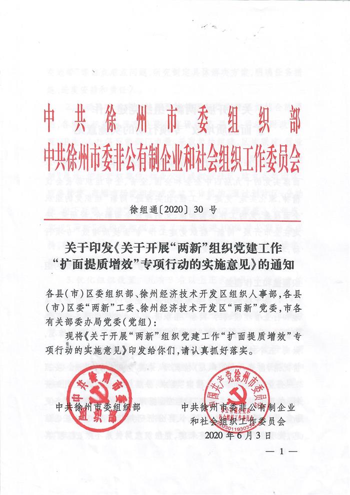 關(guān)于印發(fā)《關(guān)于開展“兩新”組織黨建工作“擴(kuò)面提質(zhì)增效”專項(xiàng)行動(dòng)的實(shí)施意見》的通知